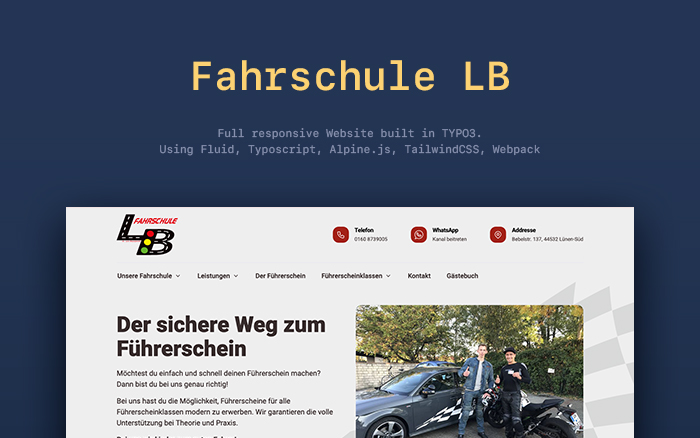 The website was meticulously crafted using Alpine.js, TailwindCSS, SASS, Fluid, and TYPO3, with a primary focus on optimizing the experience for mobile visitors. Special attention was given to incorporating standout features like the guestbook, a dynamic news system, and an intuitive contact form, all aimed at providing visitors with a seamless and engaging user experience.